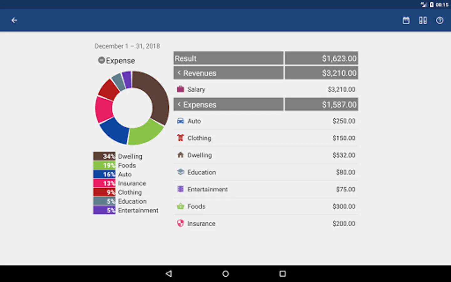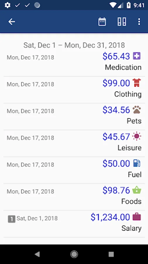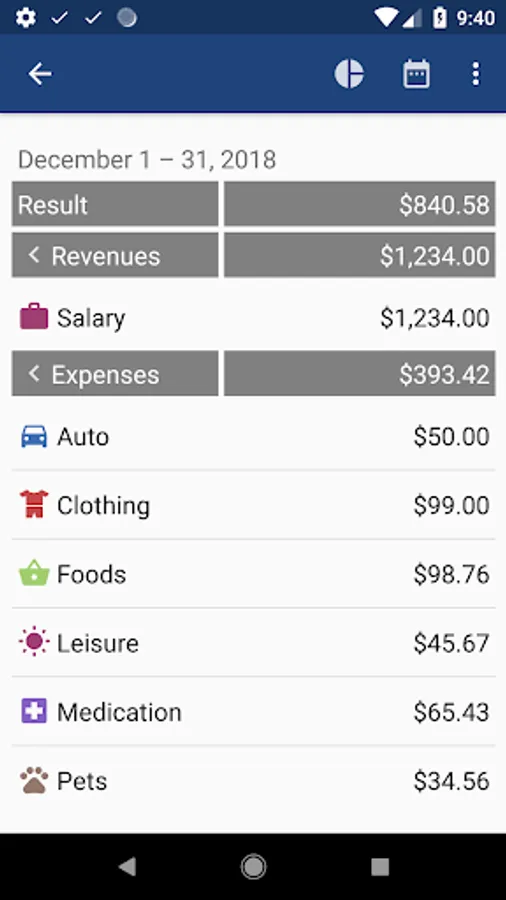 •record one-time and current expenses and revenues for car, rent, food etc.