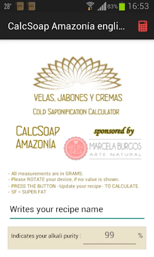 CalcSoap Amazonia Soap Bar Calculator - Free version with only 6 lipids