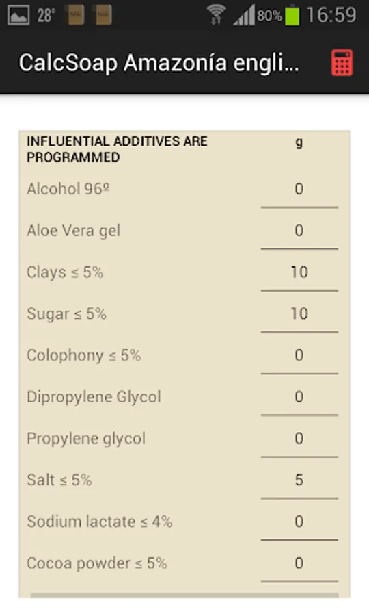 Now with a section with additives that influence the properties of the soap, little by little we will be updating. There is also a section with additives that do NOT influence either because they do not modify the properties or because at the moment we do not have the calculations.