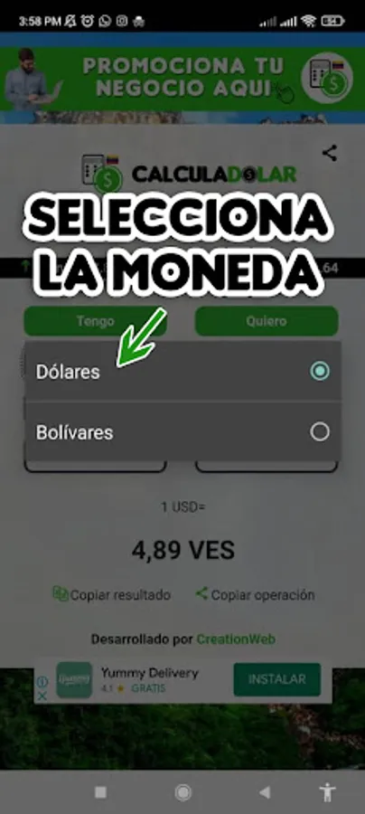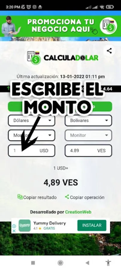 - Calculate the amount of bolivars or dollars at the exchange rate according to the rate of the day