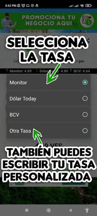 - It allows you to choose the rate with which you would like to convert, dolartoday, dollar monitor or the Central Bank of Venezuela.