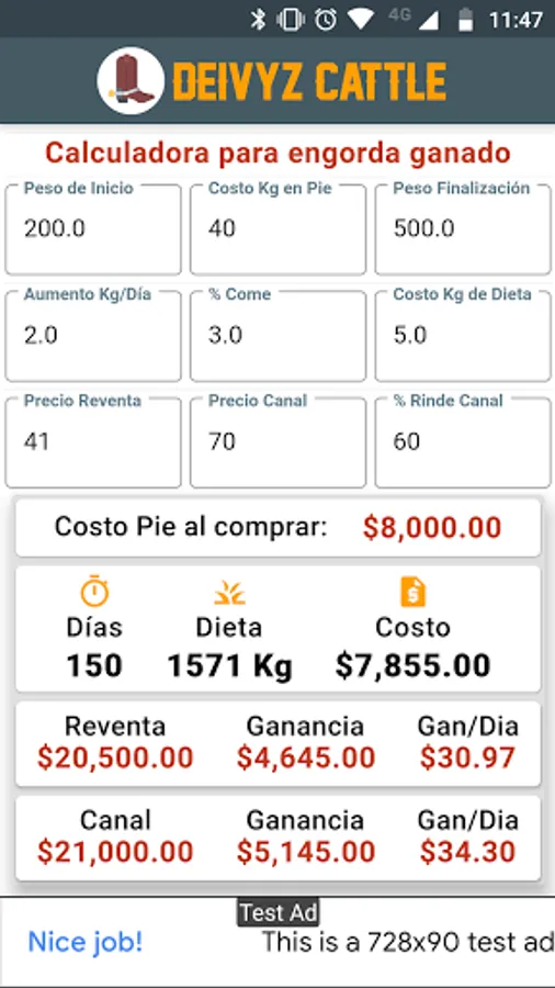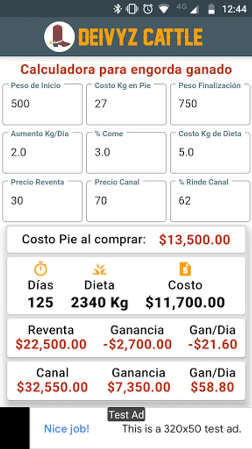 Calculator that helps you plan your fattening expenses and know if there is profit.
