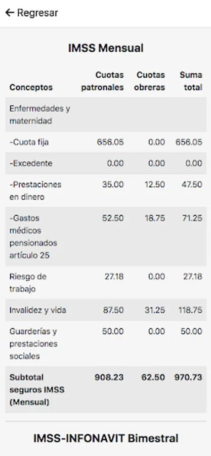 Worker-employer contributions IMSS and INFONAVIT calculator