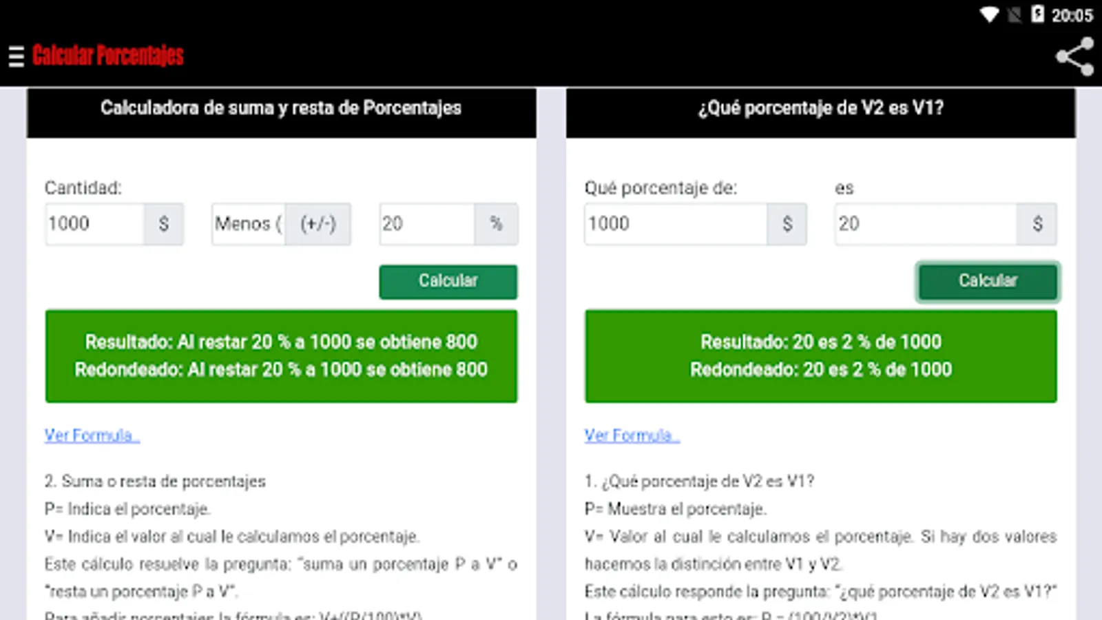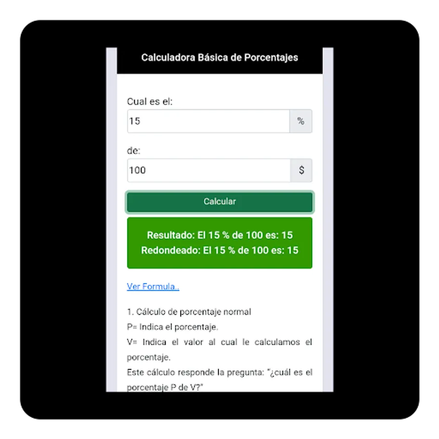 Discover the "Percentage Calculator" application, which will allow you to calculate a percentage and know the formulas applied correctly for free with just a few clicks. 👍
