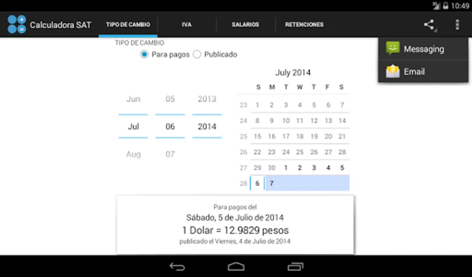 + Check the exchange rate and SAT exchange for payments of bonds in dollars for a date.