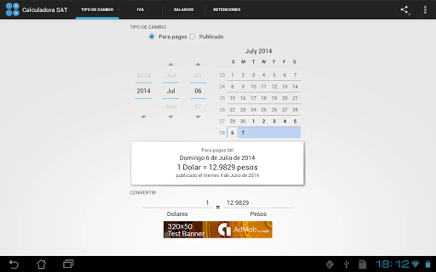 + Convert Dolare into pesos at the rate selected.