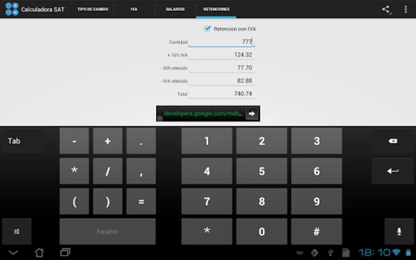 + Calculates and broken ISR withholdings (income tax) and VAT.