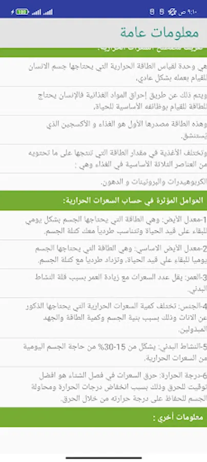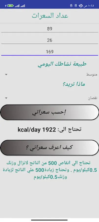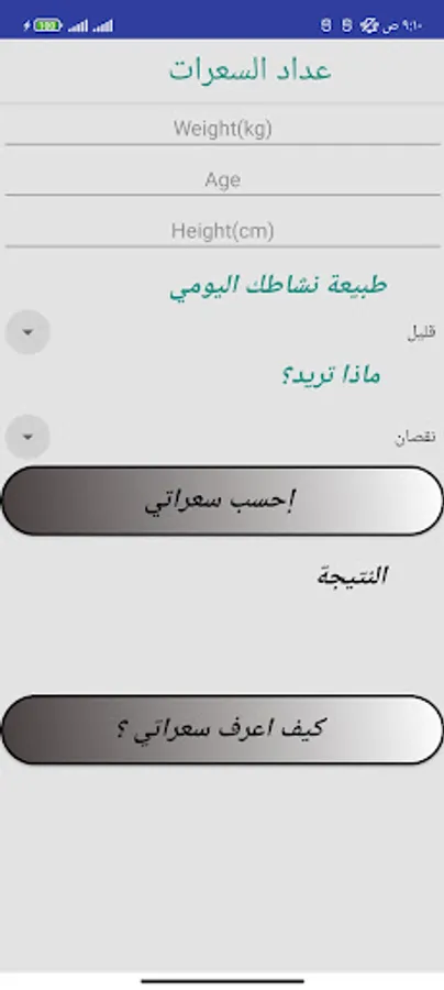 - Calculation: enables you to know the calories your body needs on a daily basis
