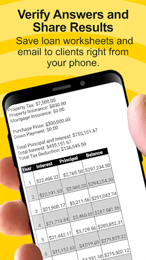 • Amortization screen lets you see all amortization or mortgage loan data at once and e-mail it directly from the app screen on your phone