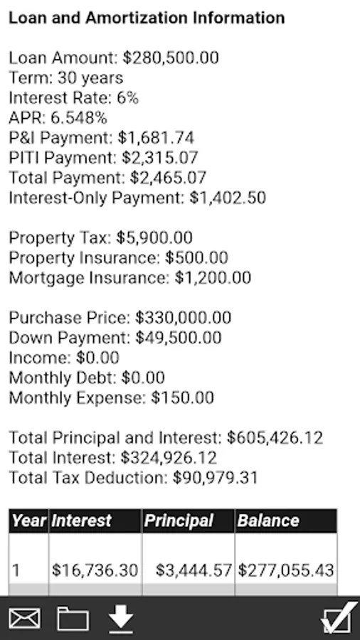 • Amortization screen lets you see all amortization or loan data at once and e-mail it directly from the app screen on your phone