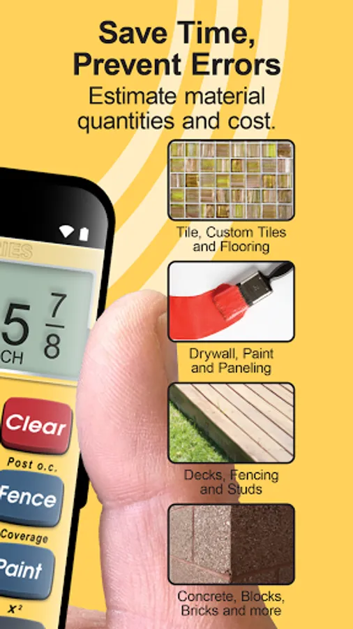 Great solution for DIYs, Handymen, Builders, Contractors, anyone needing building or repair material estimates such as: tile, paint, flooring, blocks, gravel, fences, decks and more.