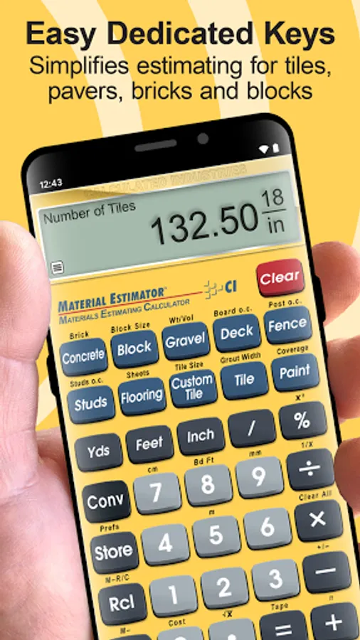 ● Full dimensional calculator for all your linear, square area or cubic volume calculation needs.