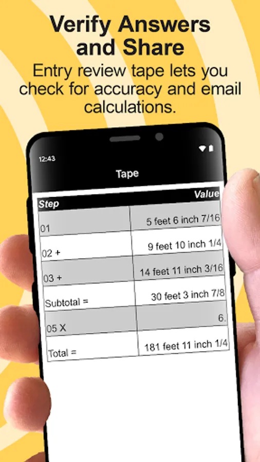 ● Works directly in Feet, Inches, Fractions, Yards and Meters – including square and cubic formats. No need to convert to decimals.