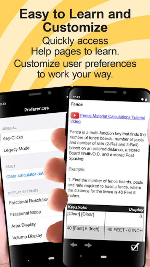 ● User-Definable Preferences — set custom options: Fractions, Area, Volume.