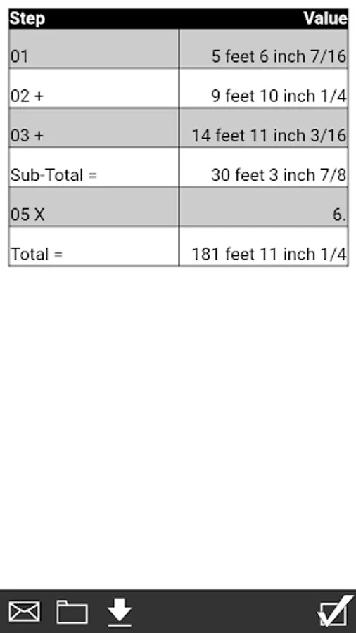• Work in and convert between all building dimensional formats: feet-inch-fractions, inch fractions, yards, decimal feet (10ths, 100ths), decimal inches and metric (m, cm, mm)