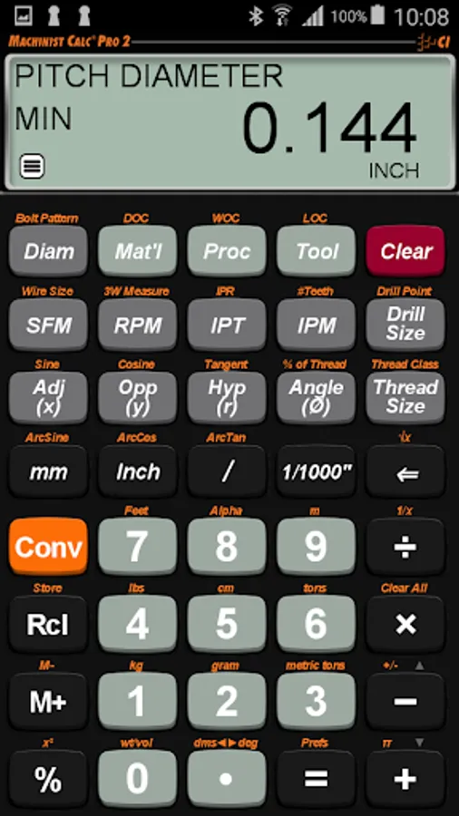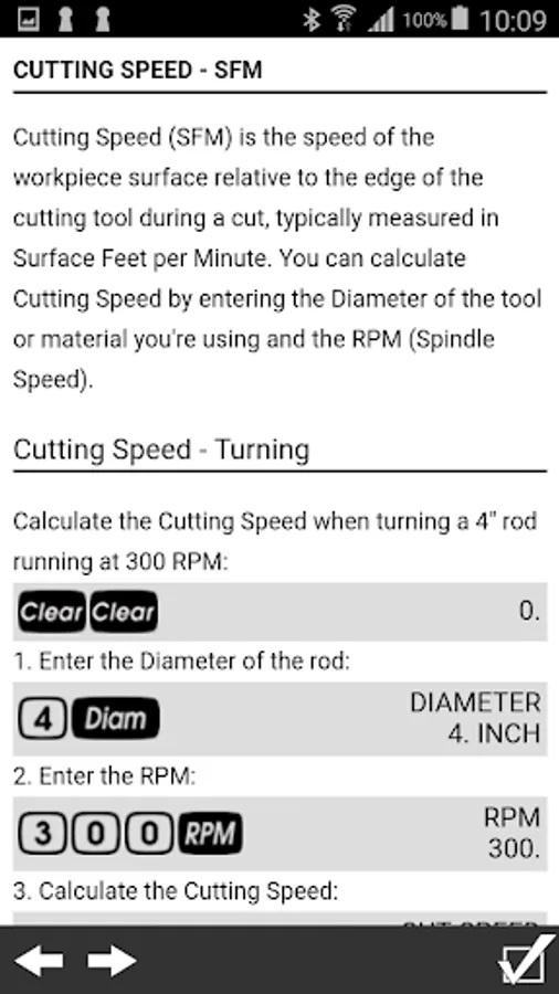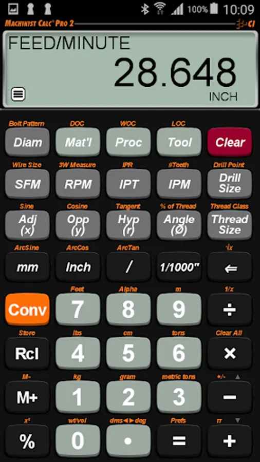 • NEW - Machining-specific keys to enter or calculate Surface Feet per Minute (SFM), Inches per Tooth (IPT), Inches per Minute (IPM), Inches per Revolution (IPR), # of Teeth, Depth of Cut (DOC), Width of Cut (WOC) and Length of Cut (LOC)