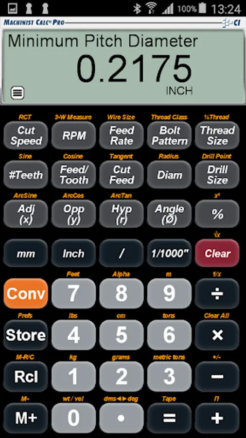 The Machinist Calc Pro is the first machining math and reference tool to provide a complete assortment of machine shop solutions. This machining calculator has more complete Thread data than the Machinery's Handbook, including step-saving Thread and Drill Size chart look-ups, speeds and feeds, right triangle solutions, bolt patterns and much more.