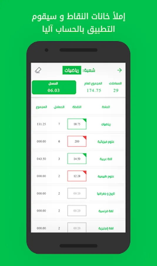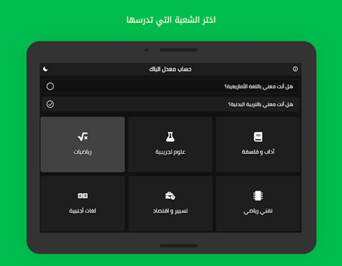 Application of the Baccalaureate rate according to the curriculum of the State of Algeria.