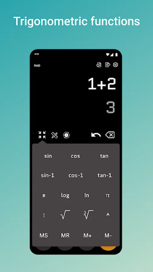 ✔ Advanced math functions such as square root, exponentiation, logarithms, and trigonometric functions