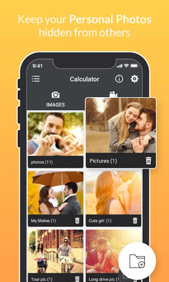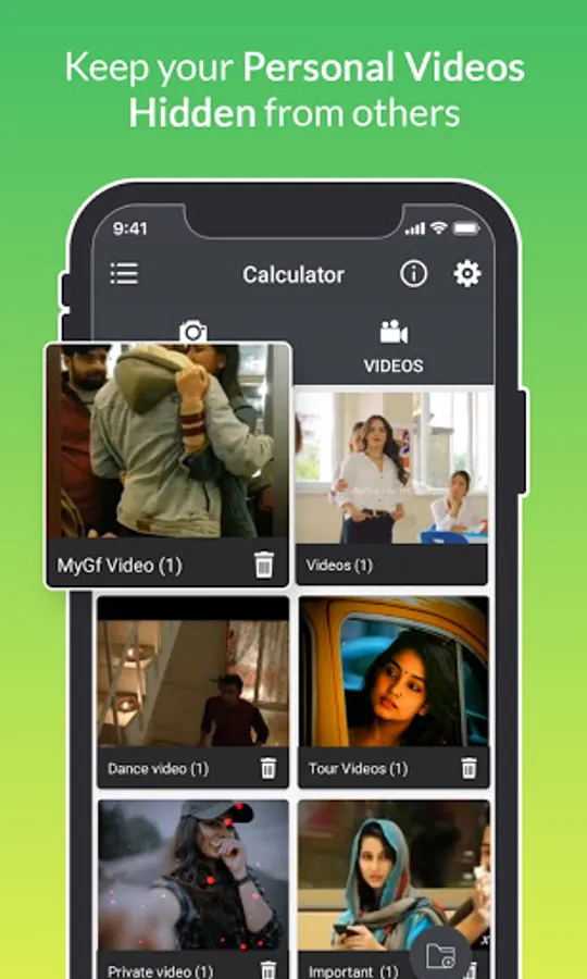 Photo vault, Video vault, secure calculator photo vault app protects your photo album, gallery, video locker, photo locker, secret videos. This app make them hidden and invisible on your phone.