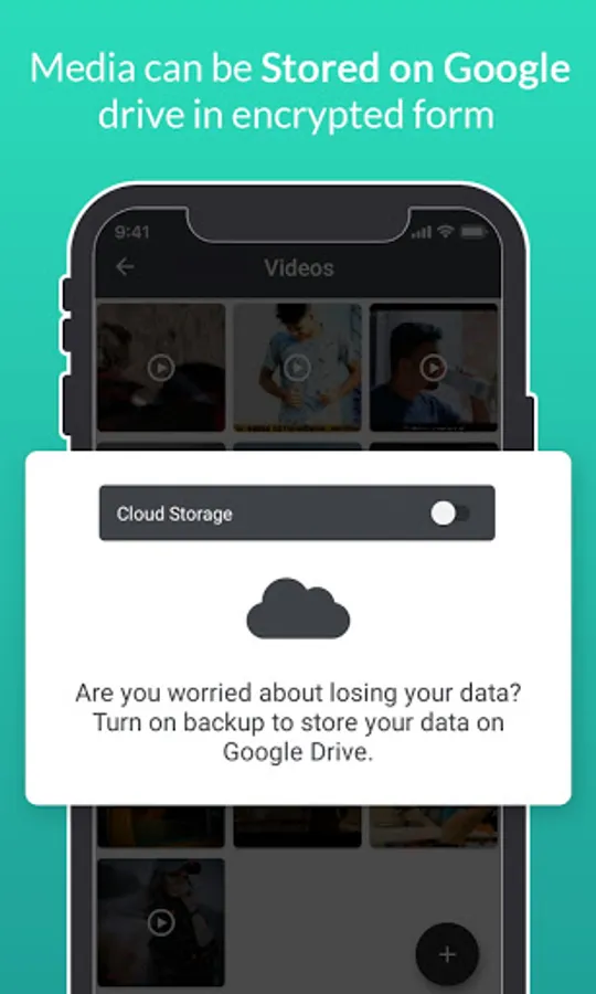 Cloud Storage : When turn on cloud storage then all media are stored in google drive, Newer loss any hide media any time backup hidden media to calculator lock app.