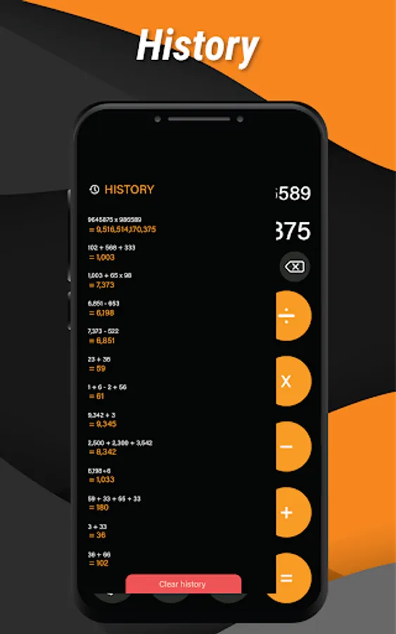 • Math Calculator keeps a record of all previous calculations in the history tab.