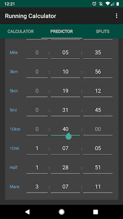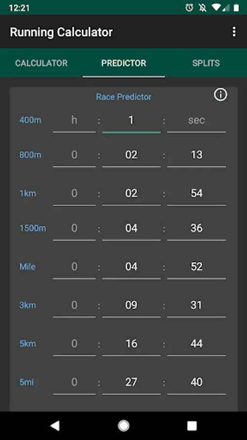 Running app with pace calculator, accurate race predictor and running splits