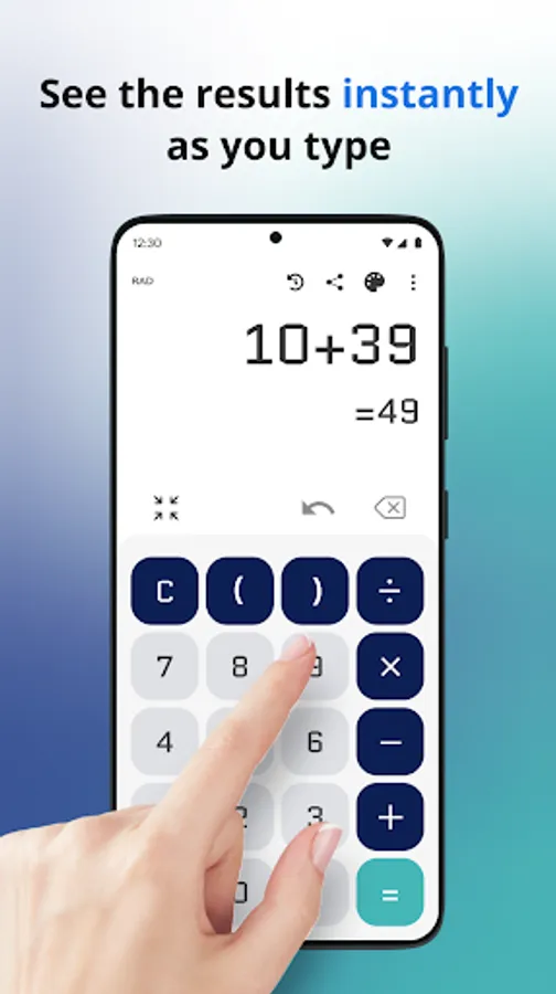 - The simple calculator app has a small size, launches basic calculations quickly and runs well even on low-end smartphones, especially if you have a tiny space on your device. Besides, the result of operations will appear as soon as the simple calculator's users input the figures, it is an effective feature for supporting saving time.