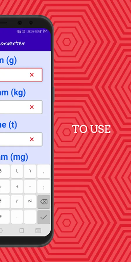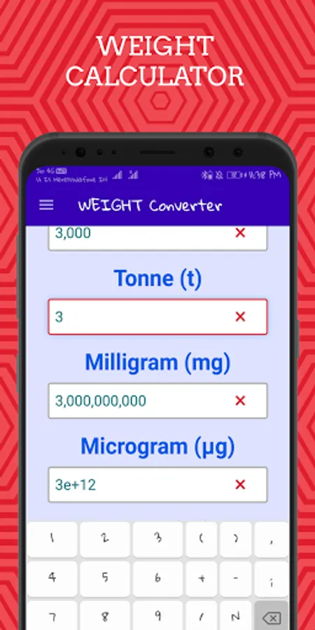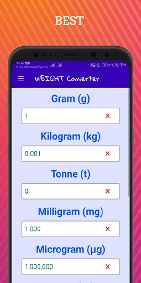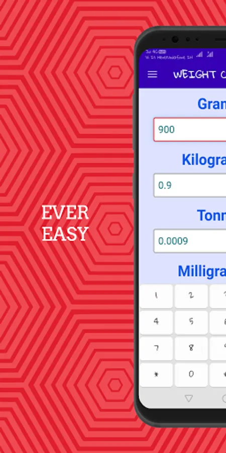 A fabulous app for converting kg to grams, kilogram to pounds, pounds to kgs and etc etc.