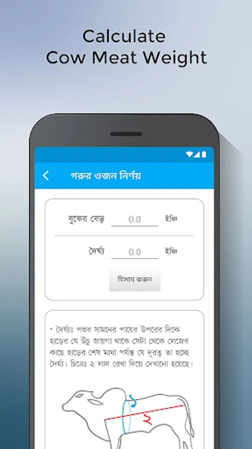 • Calculate cow meat weight using girth and length.