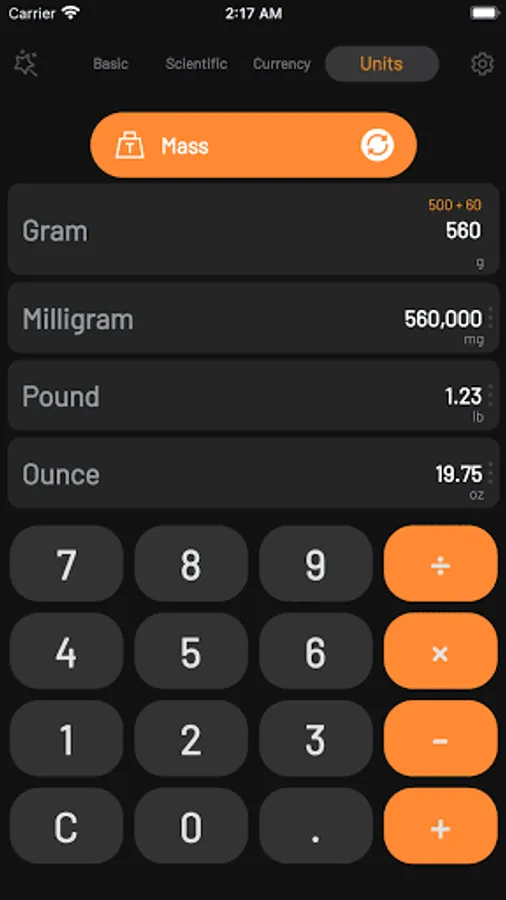 - Inherit number from basic or scientific calculator without extra input to check currencies