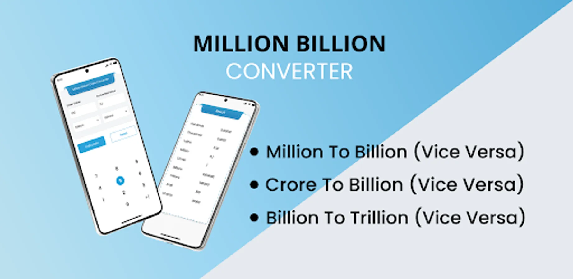 Our million to billion converter app is compatible with all android devices with Android 5.0 and up.