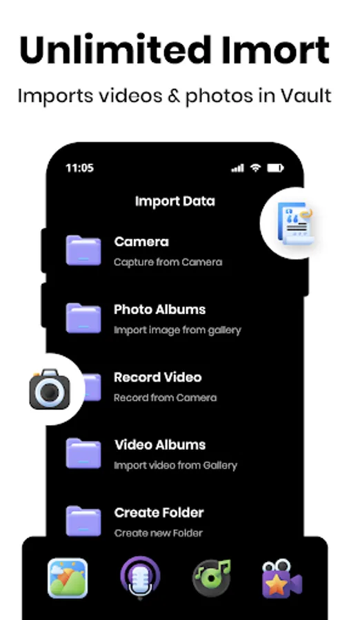 A program called "Photo and Video Lock" allows you to conceal your personal images and movies. It protects your privacy and makes it easy for you to conceal your private photo and video. Only those with the secret PIN code can access this photo and video storage. You can easily save your photo in a private location by using a PIN number. You can share the items as well as restore them. Your photo is not only moved to a hide location on your calculator lock phone with our photo locker and video vault but they are also hidden from other apps. As a result, no one will be able to find your private photo vault because they are all stored in a secret location.