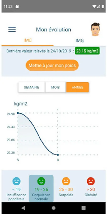 You can also update your measurements and weight to keep track of your BMI and IMG every week!