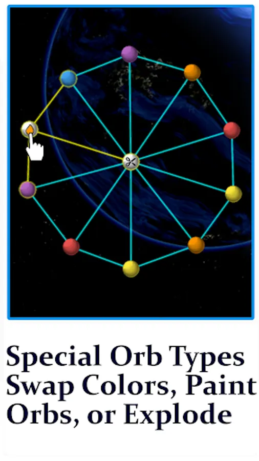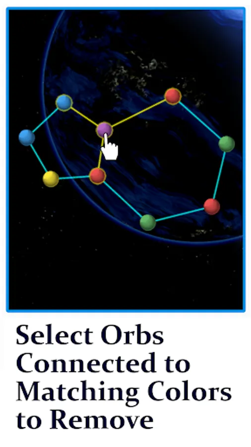 Select orbs connected to matching colors. All connected orbs smash together and are removed, unless a color does not match. Remove all the orbs to complete the level.