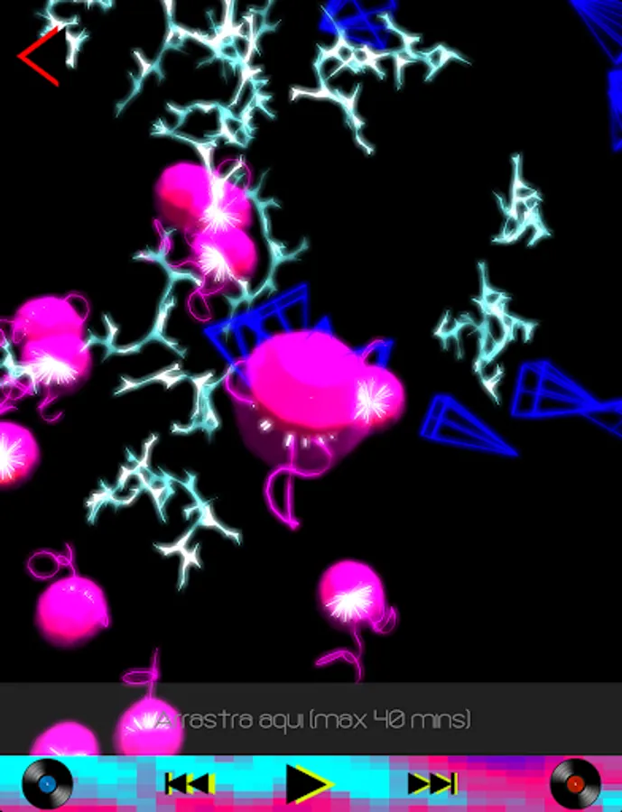 On the right side you enter the 'player' mode where you can listen to 4 complete songs at random ... only you will never know which ones they will be. In this section Shake = Shuffle.