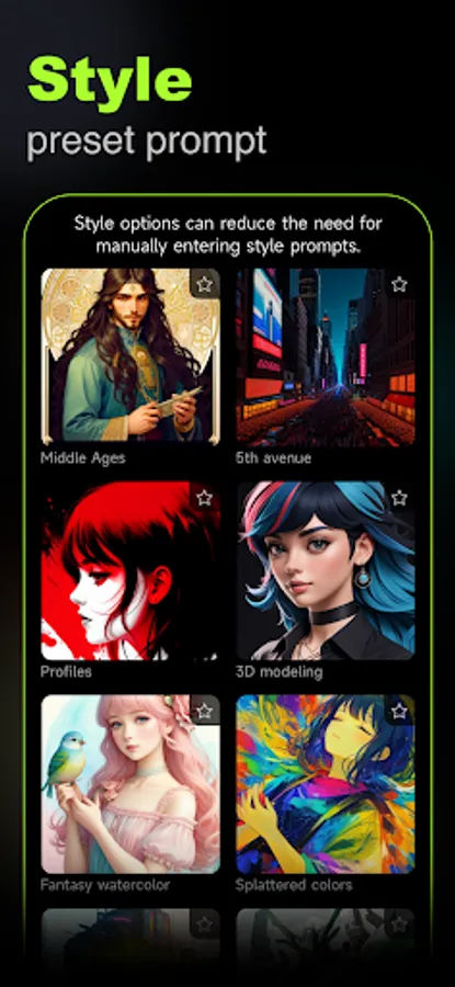 Choose a favorite artistic style, then submit an image from your phone's album, and Ani.me will turn your dream into stunning comic art in seconds! If there is no preset style you like, you can tell Ani.me what type of comic you want to generate by filling in the prompt words, and Ani.me will customize it according to your ideas.