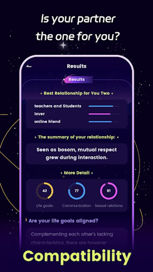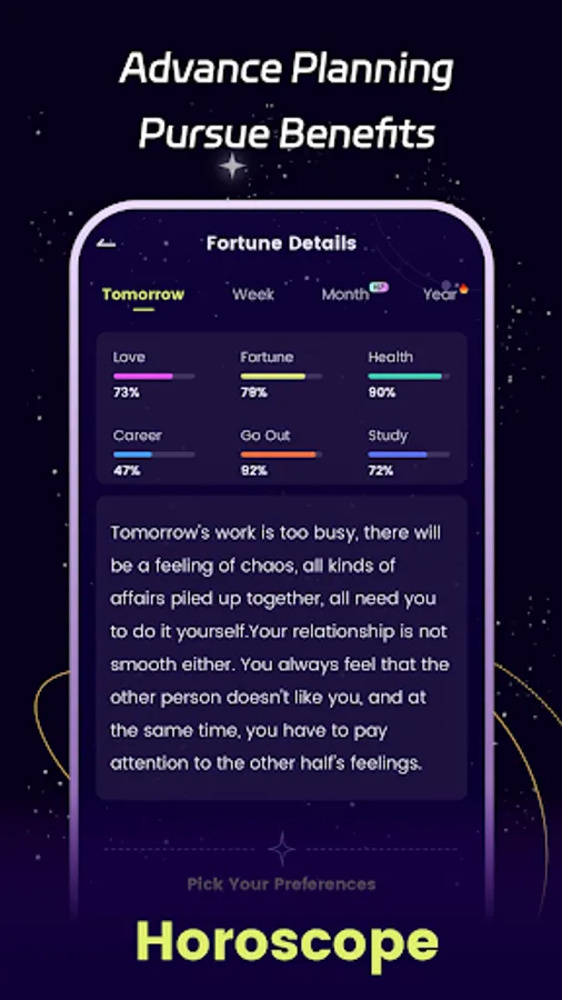 After downloading Astraltell, it can predict the best time to find a partner, helping you actively seek opportunities and increase your chances of finding that special someone. At the same time, it analyzes your and your partner's personality traits and future emotional trends, helping us understand potential differences and take measures to avoid or mitigate conflicts.
