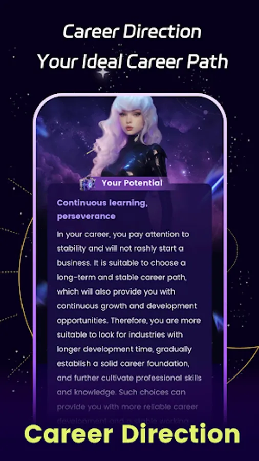 In terms of career planning, Astraltell predicts new job opportunities, investment, promotion, salary increase opportunities, career turning points, and danger points, helping you prepare in advance, seize the best opportunities, and formulate better career plans.