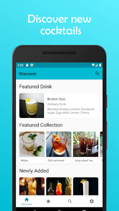 Discover new drinks on our home page. We have suggestions from our daily featured, newly added, and random selections drink categories.