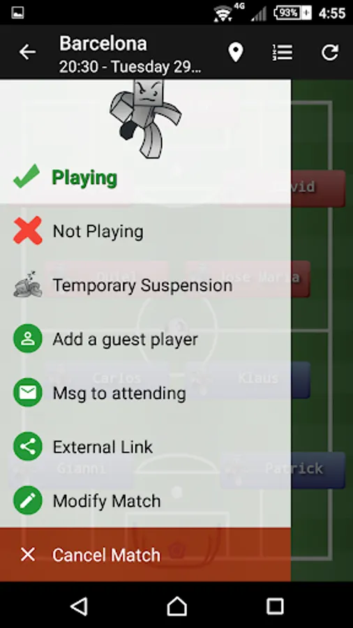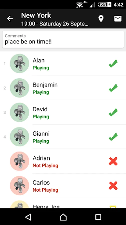 - Calecio will send everyone a match invitation with all the information needed including map location, date, comments.