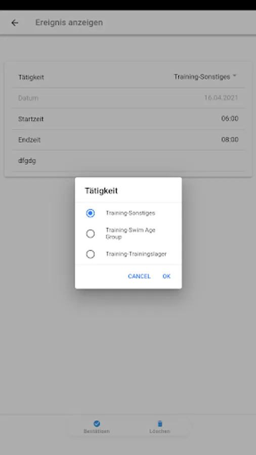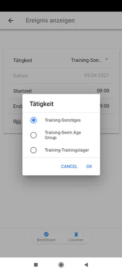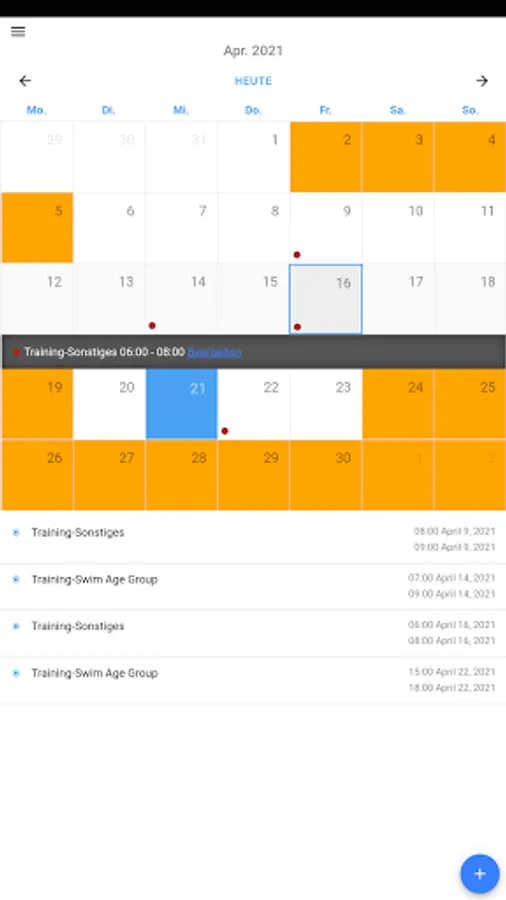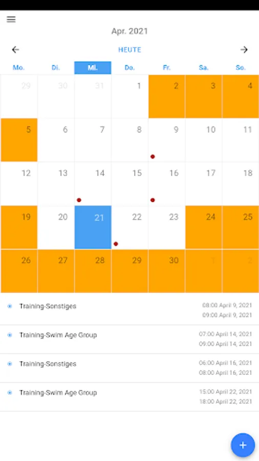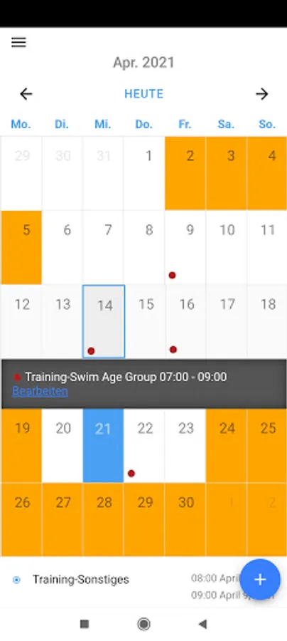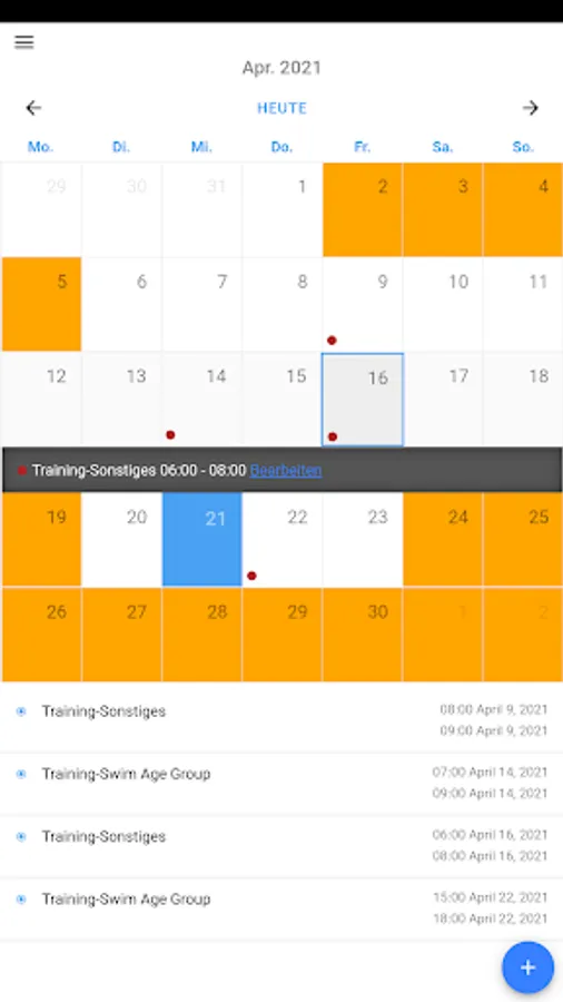 Tracking of athletical exercises with a stopwatch and calendar. Use the calendar to view previous recorded times.