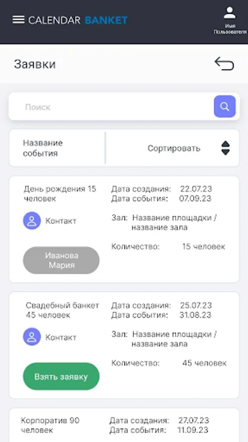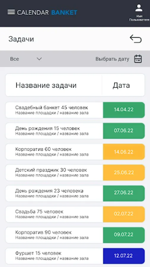 Calendar Banket - Your assistant in the management of the banquet area. Service allows you to forget about lost customers!