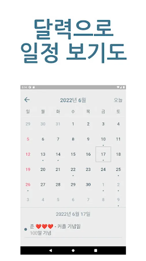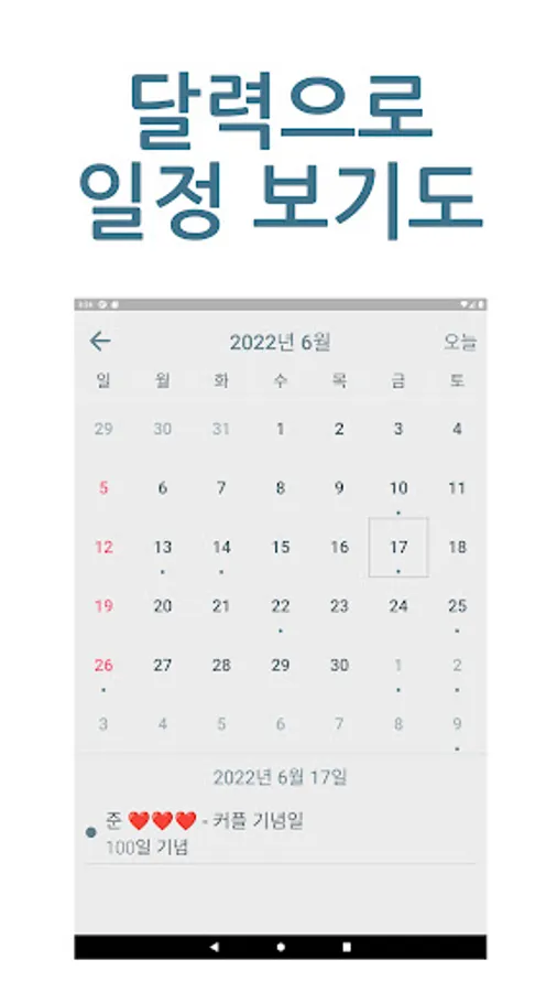 Friends who share the same schedule card can share various D-day schedules such as meetings, meetings, and visits as well as various anniversaries such as birthdays, couple anniversaries, and wedding anniversaries.