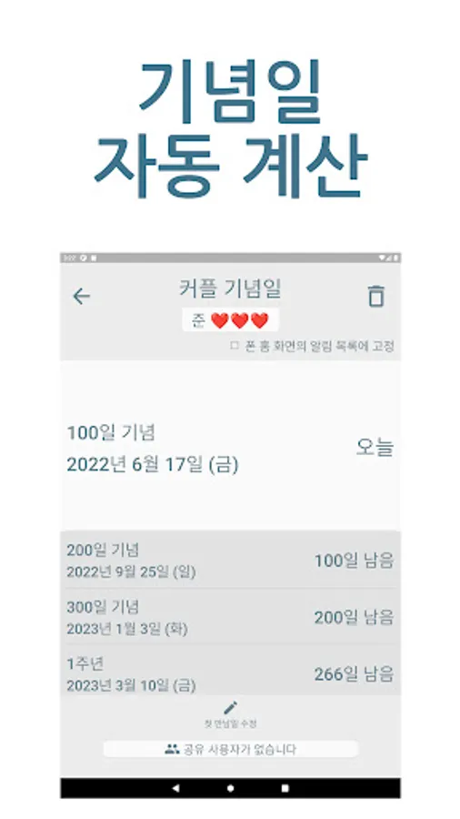❤️ Anniversary management - automatic date calculator, couple D-day management, D-day count