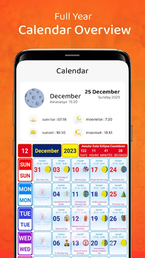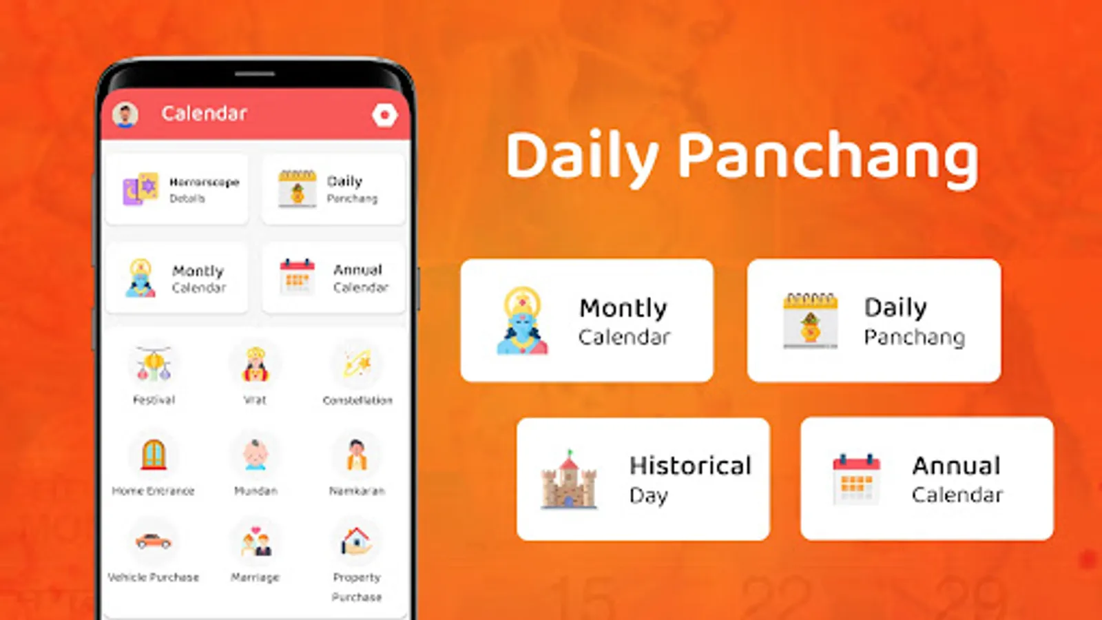 Calendar 2023 app helps you to get the auspicious days for the year, like Auspicious beginning of home, vehicle, mundan, marriage date, naming ceremony, property purchase, first feeding ceremony etc.,