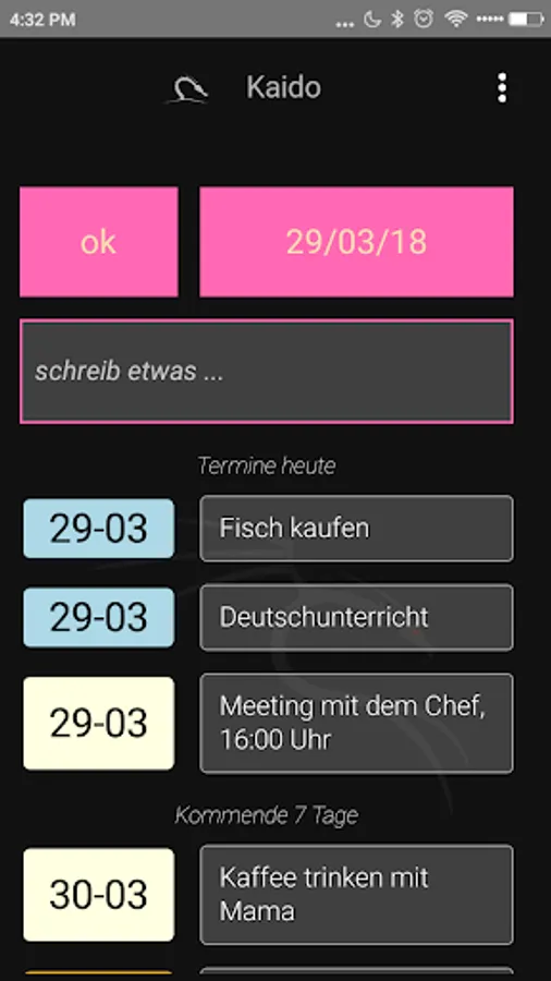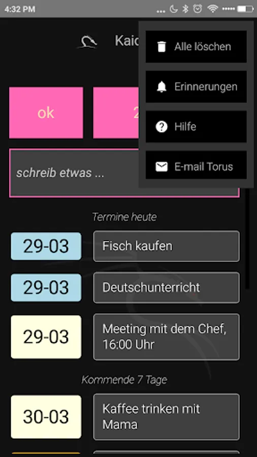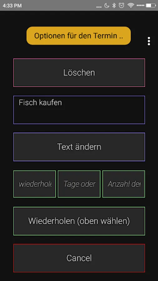 If you want to change the text of an appointment, click it and change to the next screen, the text in the text box.
