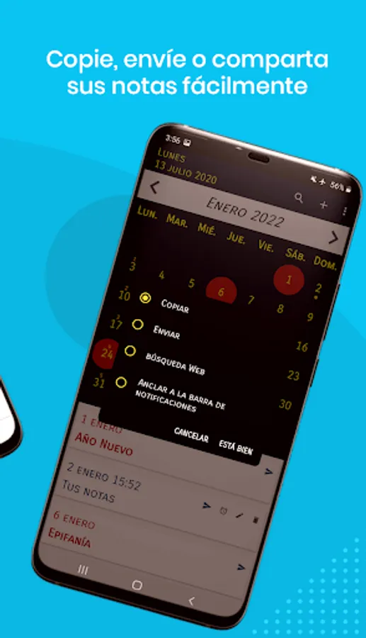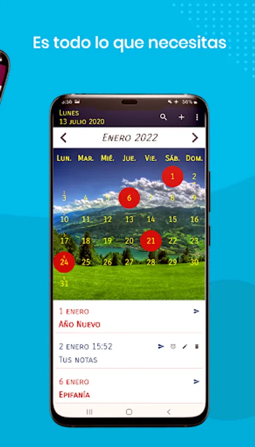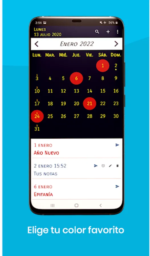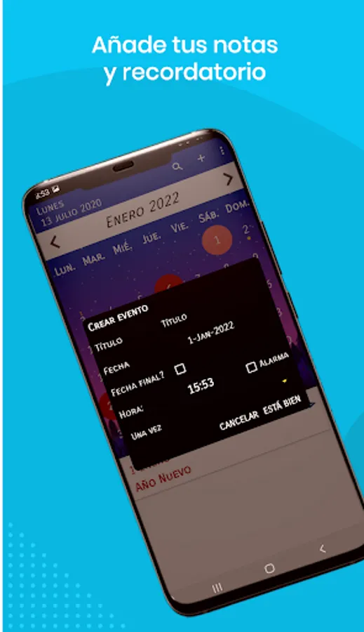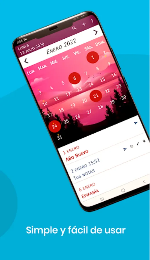 ✔ Add events: You can add your own event on a specific date; the one that will automatically appear in the calendar both of the application and in the Widget.