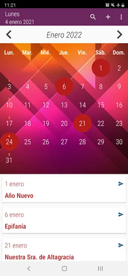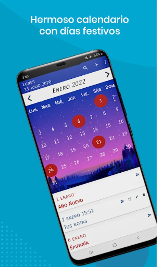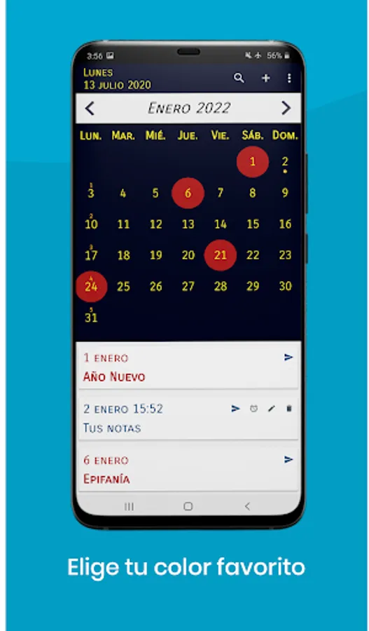✔ Add events: You can add your own event on a specific date; the one that will automatically appear in the calendar both of the application and in the Widget.