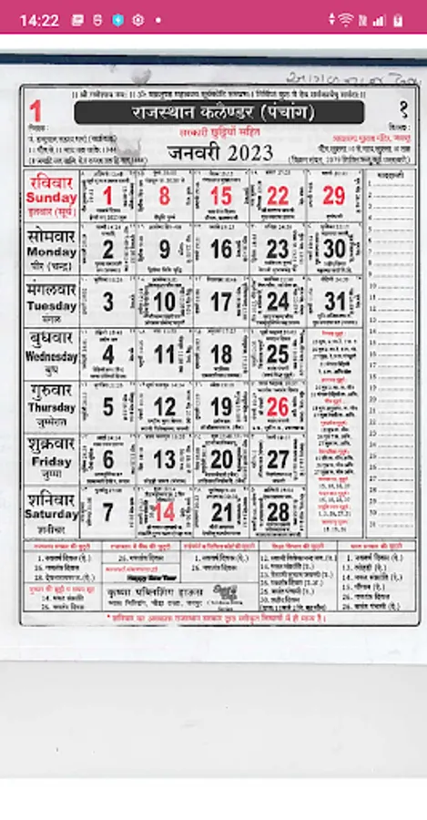 1. Rajasthan (Marwadi) Daily Calendar 2023